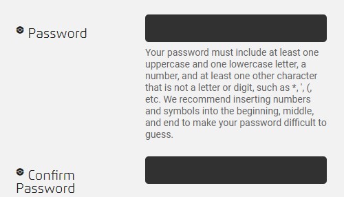 密码与重复密码,密码需含有大小写字母,特殊符号与数字,缺一不可。