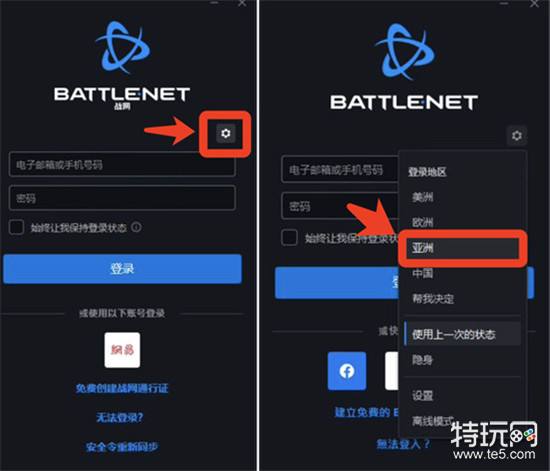 3、安装好后在登陆界面的右边有个齿轮,我们选择登陆地区为亚洲就可以进入亚服。