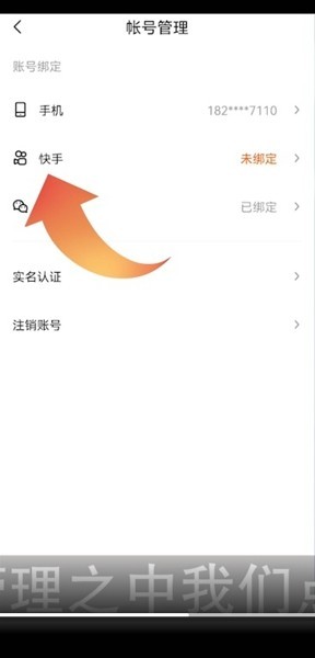 3、在账号管理之中我们点击绑定快手,只需要输入手机号码获取验证码即可绑定。