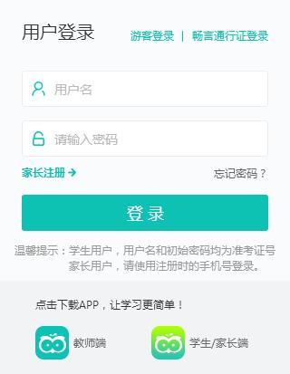 (温馨提示:学生用户,用户名和初始密码均为学生准考证号);