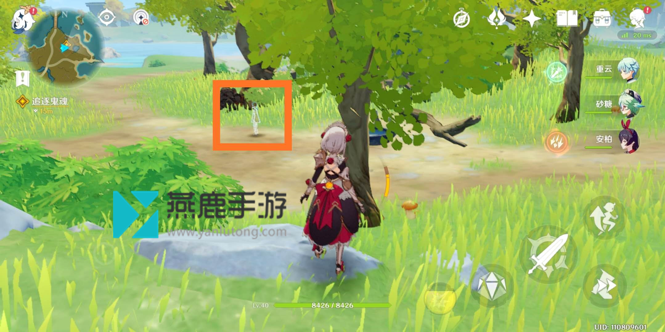9、寻找能见到完整降魔印的地方,根据任务提示到达区域,之后可以看到一个光点。