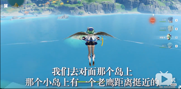 3、我们利用风场飞向对面这座岛,到了爬上岛上的柱子。