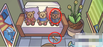 6、点击五次后面沙发上的熊就能获得钥匙。