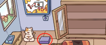 1、点击右边地上绿色的包就可以找到红色绳子,然后找到柜子上面的蓝色帽子。
