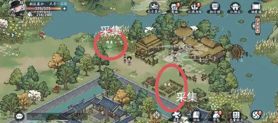 4、藏宝图在左下,采集分别在中下和右上方。